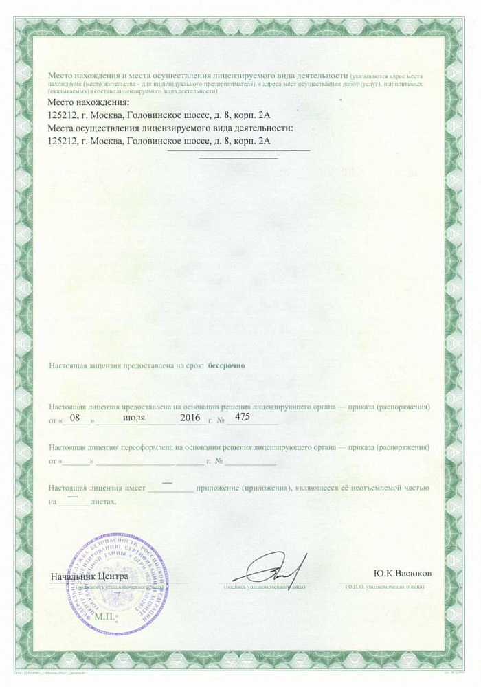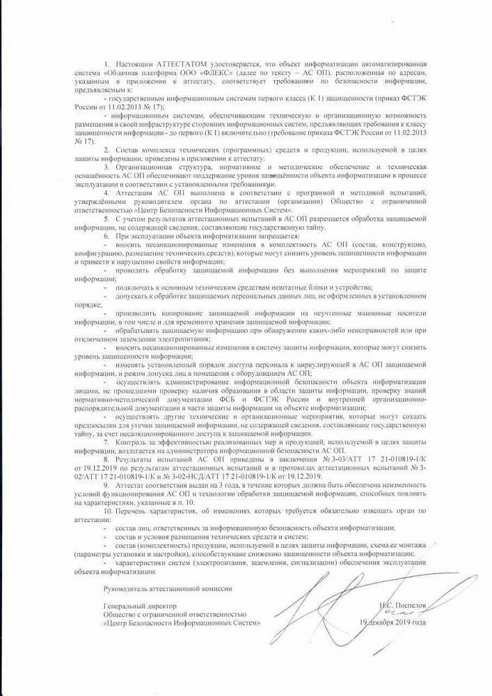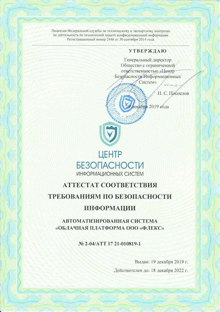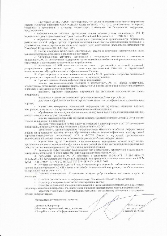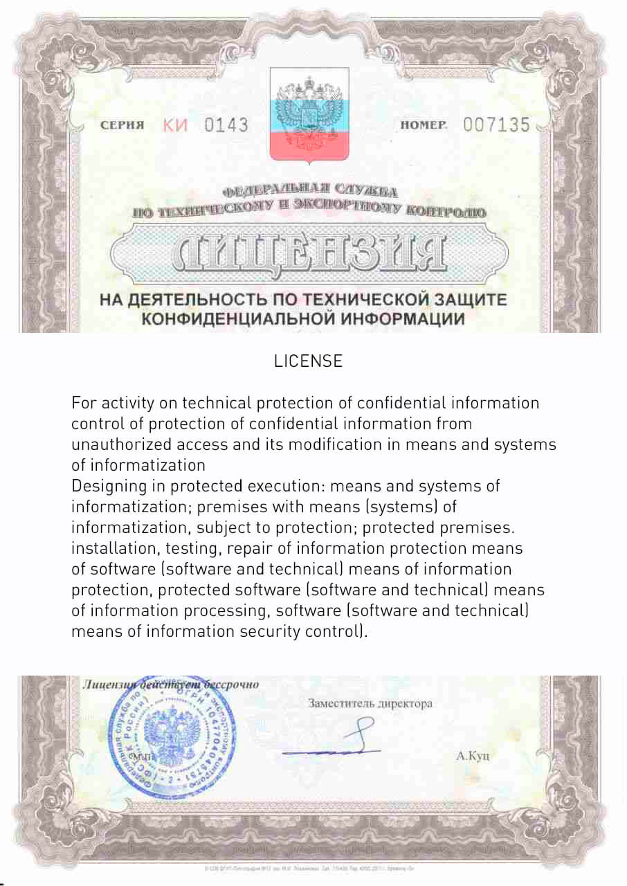 - Certification under Federal Law-152 "On Personal Data" at the highest level of data protection (Level of protection 1-4)