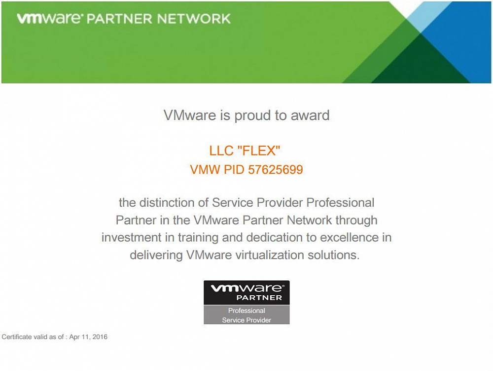 - VMware İş Ortağı (Profesyonel Hizmet Sağlayıcı) Sertifikası